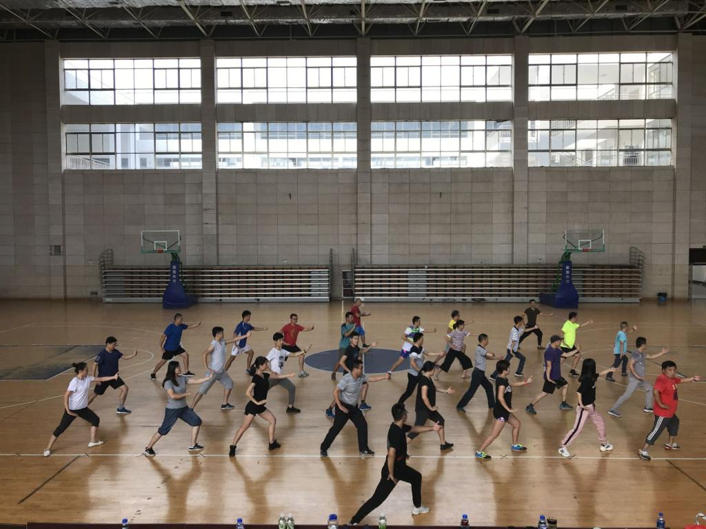 本次活动由公司武体教研室主任许贵泉老师负责主讲。他从太极拳的起源、项目特点展开介绍,一边讲解动作要领,一边进行规范化的动作示范。参加本次活动的广大公司教师,认真聆听讲解的同时,还跟随许老师进行动作套路的学习。在学习过程中,大家还就“二十四式简化太极拳”的相关问题进行了探讨和交流,通过部分专项教师的解答,让大家更进一步了解太极拳这项运动,甚至喜欢上这项运动。
