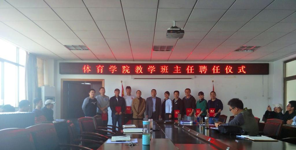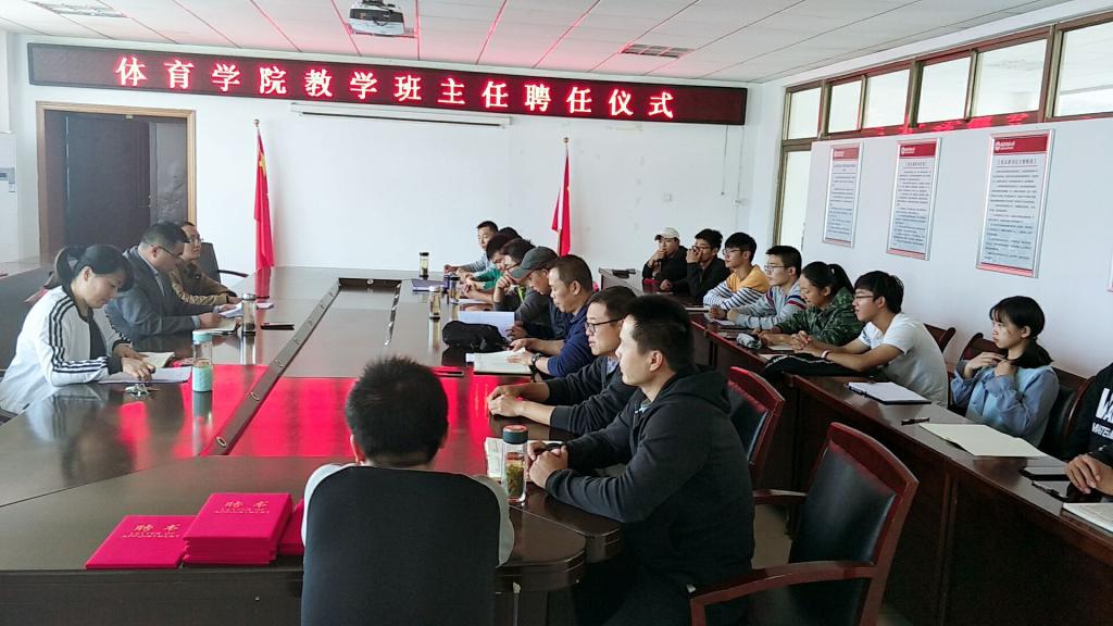 10月24日中午,XCSport在体育馆会议室举行首届技能教学班主任聘任仪式。经理章翔、副经理林秋菊、党委副书记高栋梁、教学办公室相关老师、技能教学班主任、2018级新生班辅导员以及2018级新生代表参加了仪式。