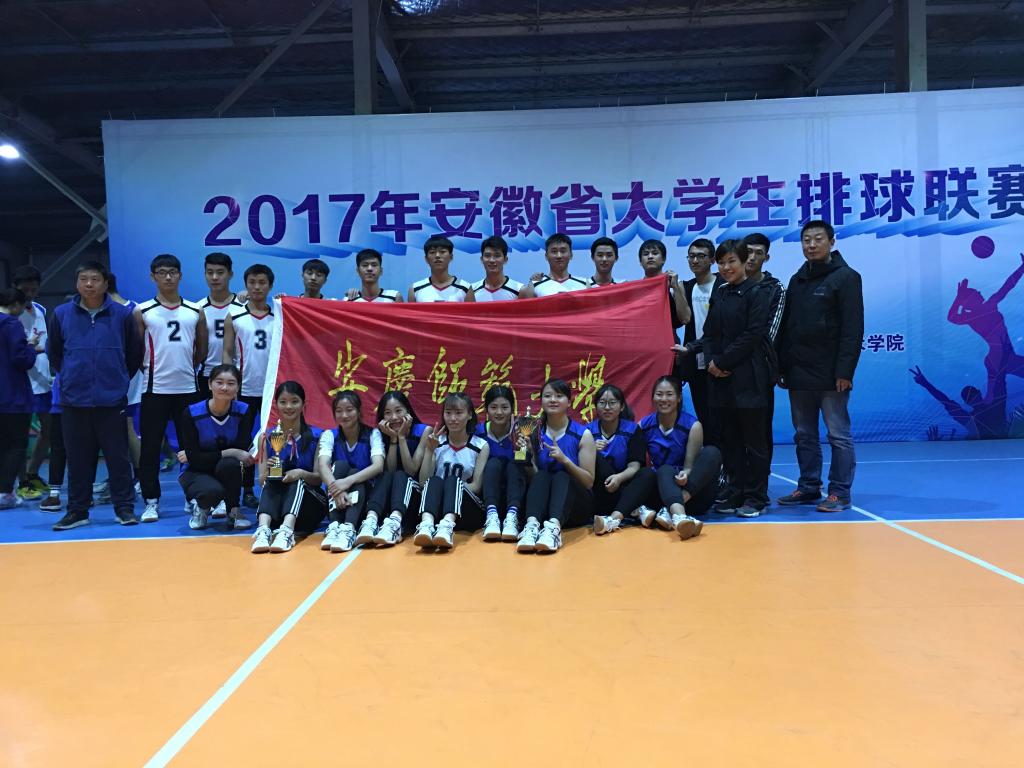 11月5日—21日,2017年安徽省老员工排球联赛在巢湖公司体育馆举行。公司排球队在李斌、邓龙、闻又文等老师的带领下,分别参加了本次比赛男、女丙组(体育专业组)和男、女甲组(普通高校组)的比赛。最终体育专业组男、女排球队分别获得二等奖,普通高校组男、女排球队分别获得三等奖;另外,体育专业组和普通高校组排球队均获得了“体育道德风尚奖”;梅冠东、解玉凯、韩雨秋、刘方方、李国栋、赵立明、倪良文,覃观青等16位同学获得“体育道德风尚奖”运动员称号。
