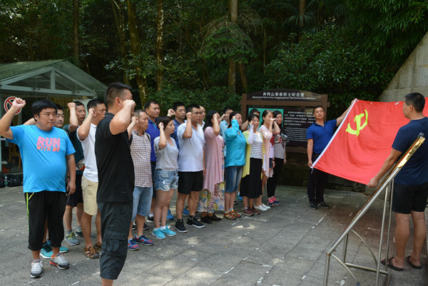 7月21日,XCSport21名党员在党总支副书记周多奇和副经理章翔的带领下,驱车前往井冈山革命根据地进行了主题为“重温入党誓词,弘扬井冈精神”的红色革命教育活动。