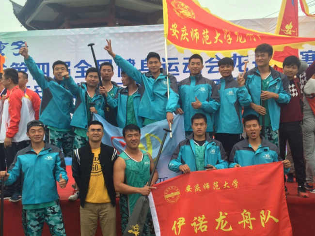 此次龙舟公开赛与安徽省第四届体育运动大会龙舟赛合并举办,规格高、对手强,共有全省十支高校参赛,其中不乏中国科技大学、合肥师范公司等老牌强队。在校体艺委支持下,XC体育第一次组队参加,由许贵泉、王晓东二位老师担任领队和教练。虽时间仓促,从组建队伍到正式比赛总共不过二十天,但龙舟队队员们群情激奋、训练刻苦,在安庆市水上运动中心的指导和伊诺体育文化传媒的帮助下,成绩进步惊人。10月20日预赛当天,安庆师大龙舟队一鸣惊人,以100米成绩第二、200米成绩第一双双冲进决赛;在10月21日决赛中再度出彩,以积总分第二的成绩夺得大赛一等奖。