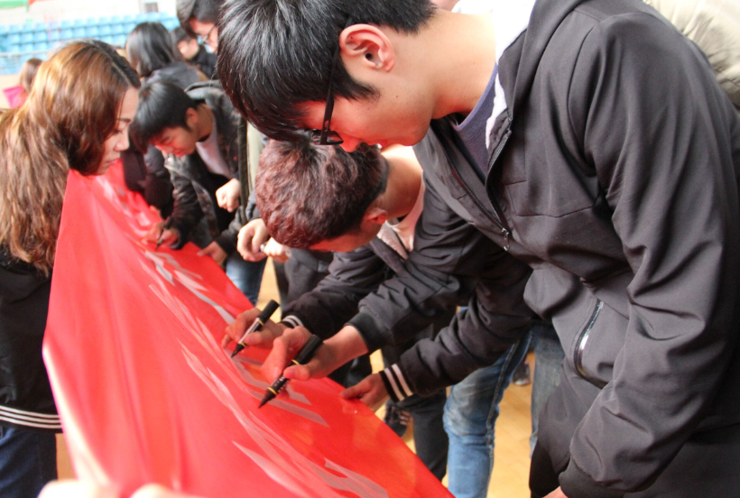 会议最后,举行了 “诚信为本、安全至上、塑文明形象、创和谐校园”承诺签名活动。