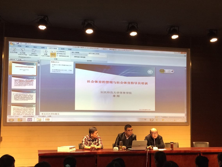 11月19日上午,由安徽省体育局社会体育指导中心主办,我院承办的第三期安徽省一级社会体育指导员培训班开班典礼在教师教育中心学术报告厅隆重举行,来自安庆市教体局群体科、公司相关负责人和全校200多名教师与员工及安庆市80余名社会体育技能指导服务人员参加了培训。