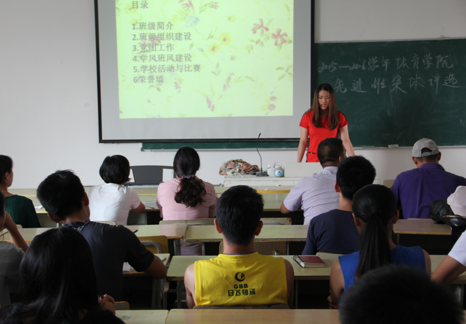 为树立典范,激励先进,加强班集体建设,增强班级凝聚力,促进优良班风、学风,9月27日中午一点,由公司团总支主办的2015-2016学年先进班集体评选活动,在XCSport多媒体教室举行。体育公司党总支副书记周多奇、院学工组的全体成员应邀出席了本次评选活动,各班级均派出代表观摩了本次比赛。