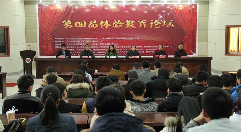 2016年1月9日,第四届体验教育论坛在校行政楼一楼会议室隆重举行, 校员工处、教务处、团委、传媒公司等单位的领导老师参加了此次会议。论坛汇集了国内多名体验教育行业知名学者、中小学董事长、培训机构负责人及公司有志于从事体验教育的员工约200人。论坛由安庆师范公司XCSport“营地教育研究中心”和省高等教育振兴计划“弘毅体验教育名师工作室”共同主办,XCSport营地研究中心主任张书军老师主持。