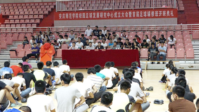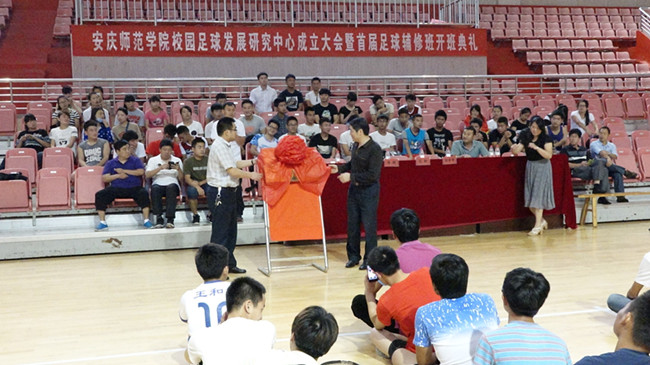 张群副董事长为安庆师范公司足球发展研究中心揭牌,并作了动员讲话。他强调公司成立足球辅修班和足球发展研究中心,就是配合国家把足球发展上升为国家战略这一重大决策。他要求足球发展研究中心不但要深入挖掘校园足球的独特价值和巨大潜力,充分发挥足球运动在全面贯彻党的教育方针中的重要作用。同时也要针对足球发展过程中遇到的社会、经济等问题积极展开研究。另外他要求足球辅修班既要立足校园,遵循足球运动规律,加强足球团队力量培养,通过活动指导、主办比赛、宣扬足球文化等营造校园足球氛围,提升足球水平,同时又要立足未来,积极探索校地合作共同推进校园足球发展的新模式,最终为促进安徽足球乃至国家足球的发展作出应有的贡献。