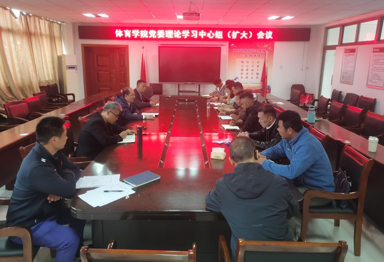 10月29日,体育公司党委理论学习中心组在体育馆三楼会议室召开扩大会议,专题学习党的二十届四中全会精神。体育公司党政领导班子、党委委员、纪委委员、各党支部书记、教研室主任参加会议。会议由体育公司党委书记王玮主持。