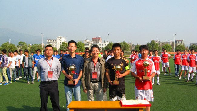 总裁判长项和平老师宣布了本次足球联赛的比赛成绩。12支代表队经过近一个月紧张、激烈、精彩的角逐,最终经济与管理公司、数学与计算科学公司、计算机与信息公司分别获得公司2015年老员工足球联赛前三名。(林秋菊)
