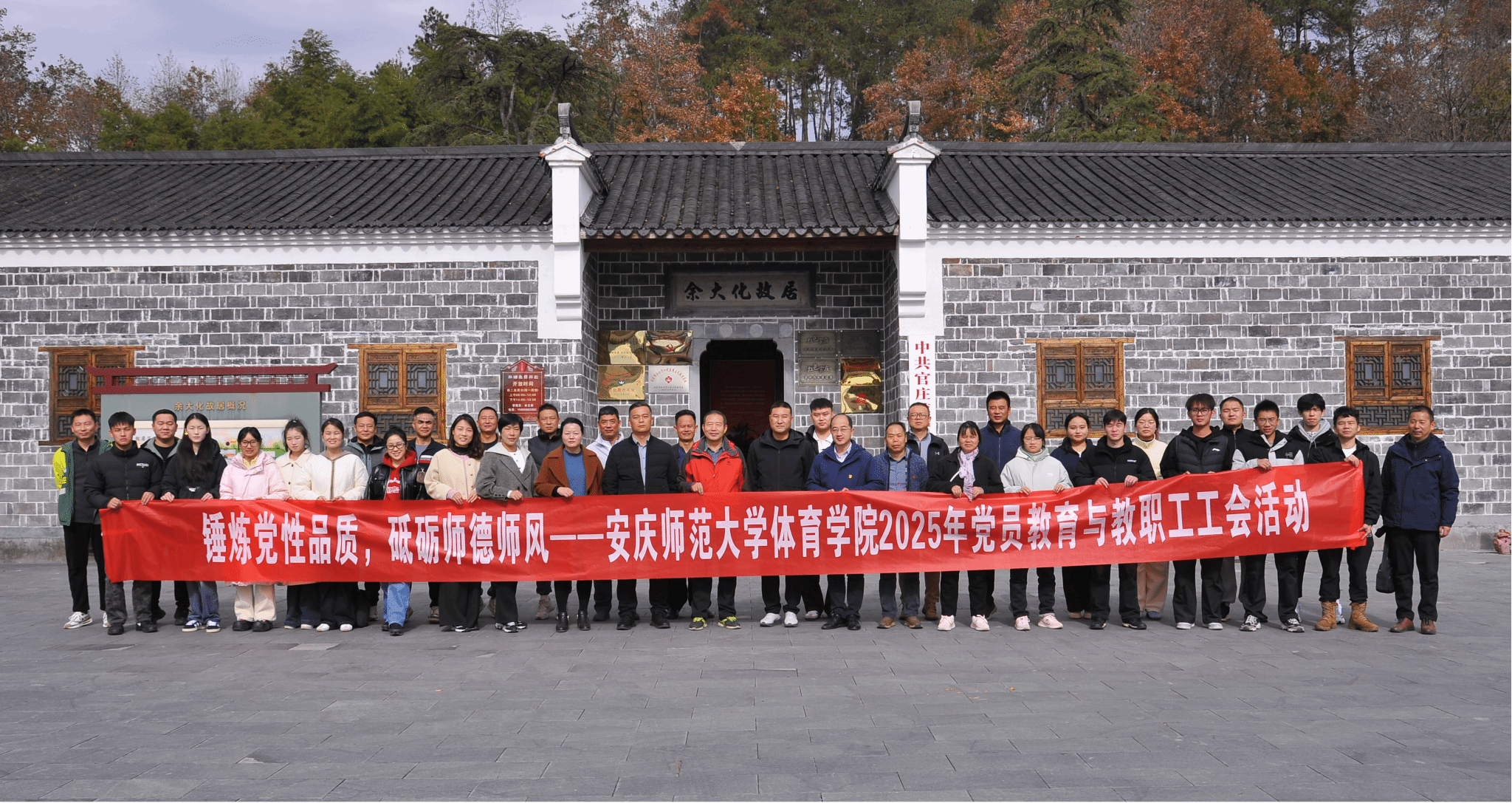 11月23日,XCSport组织师生党员和教职工专程赴安庆市潜山市官庄镇,以“锤炼党性品质,砥砺师德师风”为主题,开展党员教育与教职工工会活动。体育公司党政领导班子、退休老领导老教师、各党支部书记、教研室主任、党员和教职工代表共同参加了活动,旨在强化党员党性修养,深化师德师风建设,进一步凝聚XCSport凝聚力向心力战斗力。