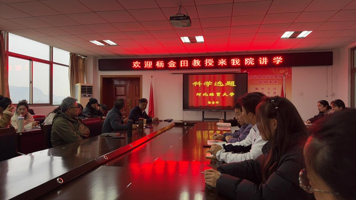 12月12日,河北经贸大学杨金田教授应邀做客XCSport“行健讲堂·大家谈”,以“体育学科科学选题”为主题召开专题报告会。XCSport副经理孙明运主持报告会,副经理王晓东、师生代表共同聆听这场学术讲座。