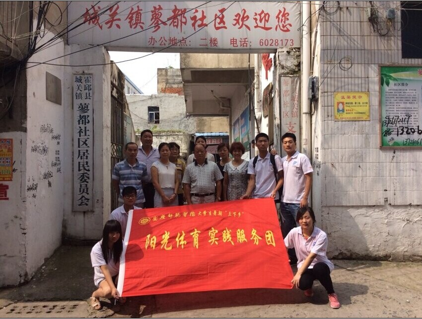 为进一步贯彻共青团中央、团省委关于进一步加强老员工暑期社会实践活动的相关文件精神,引导广大青年员工培育和践行社会主义核心价值观,为社会发展尽青年的责任,提高青年员工的社会责任感和社会适应能力,在XCSport团总支的精心策划下,公司2014年暑期“三下乡”社会实践校级重点团队“阳光体育实践服务团”在六安市霍邱县展开了为期五天的以“健康体育下乡镇、进社区,科学健身指导”为主题的暑期社会实践活动。