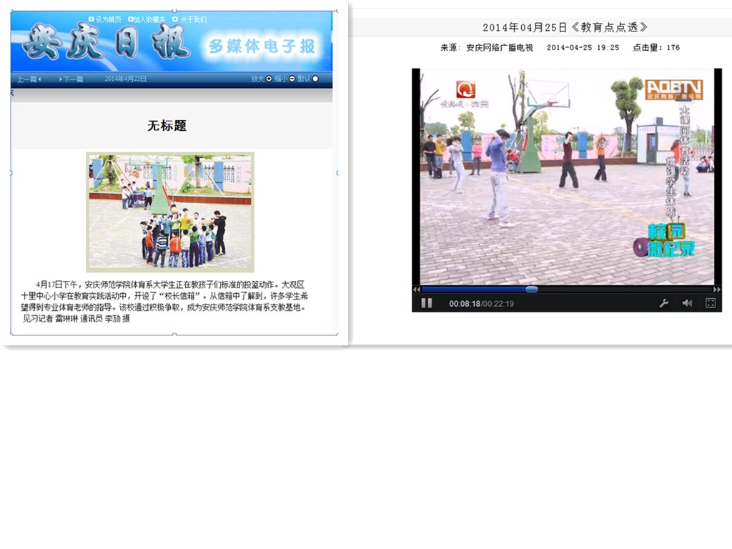 本次活动不仅为XCSport员工教学提供了一个良好的平台,增强了公司员工的课堂教学能力;也让小员工们深刻感受到了体育活动的无限乐趣与魅力,让他们在学习期间得到了充分的体育锻炼,培养了小员工综合实践课程意识。此次活动受到了安庆市十里中心小学师生们的一致认可与肯定。同时本次活动在安庆日报以及安庆教育网均被宣传报道,也由安庆教育“安庆教育点点透”栏目全程录制报道。(张强)http://vod.aqbtv.cn/2014-04/25/cms248917article.shtml
