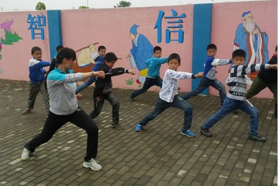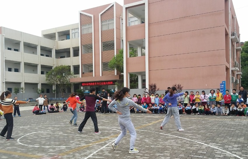 首先,由公司员工向十里中心小学的师生们做了精彩健美操、武术和篮球的才艺展示,博得阵阵掌声。才艺展示结束后,不同专选的员工对小员工们进行分组,分别进行了武术、健美操与篮球的系统的教学。员工们在教学中表现的十分认真和有耐心,不仅亲身展示示范,并且还手把手的帮助孩子们改正动作;孩子们在学习中也十分的专注,不时的向支教的同学请教提问。在整个教学过程中,支教的同学们教的认真负责,孩子们也学的很快乐。整个义务支教活动,在轻松和谐的气氛中圆满结束。