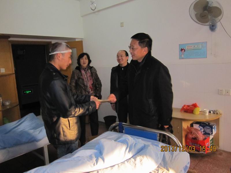 12月3日下午,副经理闵永新在员工处调研员万鹏飞和XCSport党总支副书记韦长发等人的陪同下前往安庆石化医院,看望慰问该院因意外受伤的休闲体育专业2013级员工李某,并送上慰问金。