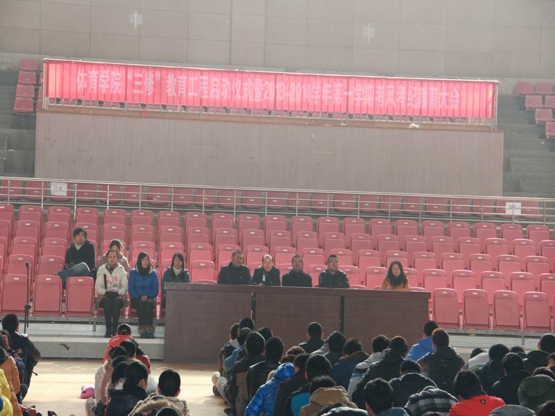 为全面贯彻落实《安庆师范公司老员工“三修”教育工程实施意见》,帮助公司员工增强道德修养,提高综合素质,养成文明习惯,同时也为进一步促进公司学风建设,端正考风,严肃考纪,实现“四成”教育目标,12月20日下午,XCSport在体育馆篮球馆内举行“三修”教育工程推进暨2013—2014学年第一学期考风考纪教育大会。公司全体党政领导出席大会,公司党政办公室、员工工作办公室、教学科研办公室负责同志,各教研室主任、员工党支部书记和全体专职辅导员以及公司2011级、2012级和2013级全体同学参加大会。会议由公司党总支副书记韦长发主持。