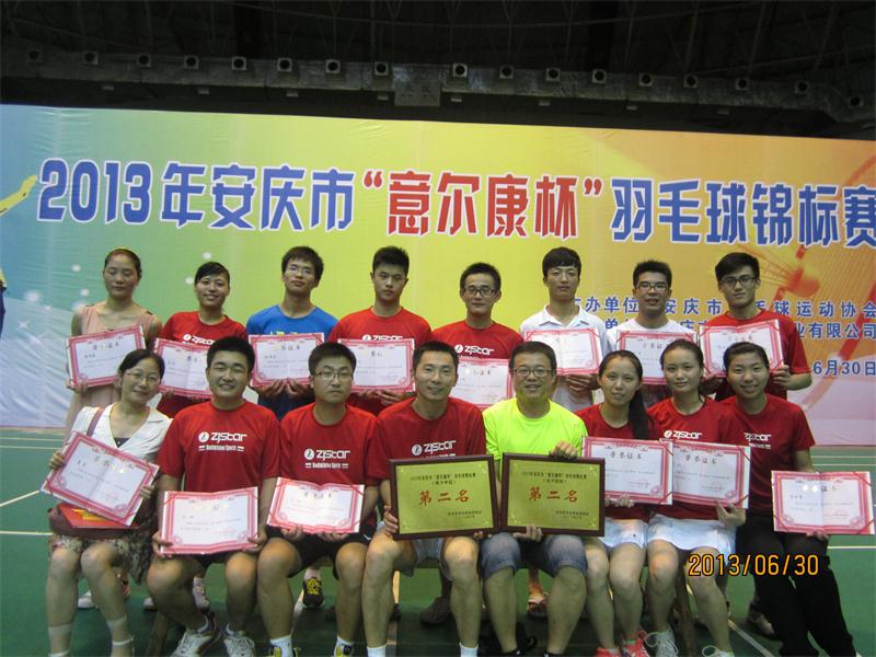 2013年6月29日-30日,安庆市“意尔康杯”羽毛球锦标赛在市九牧体育馆隆重举行。安庆市副市长、市全民健身工作委员会主任黄杰亲临现场并宣布比赛开幕。我校以XCSport副经理章翔为领队,以王友亮、陈诚等老师为教练,以2010级体育教育专业羽毛球专选班的同学为队员的代表队,应邀参加了本次比赛。最终经过紧张激烈角逐,公司代表队分别荣获本次比赛男子甲组团体和女子甲组团体亚军的佳绩。