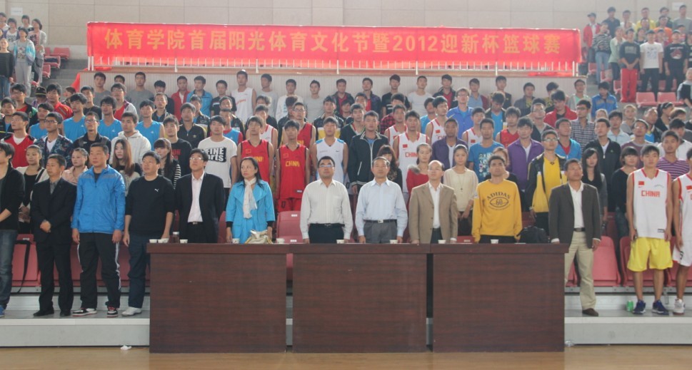 为进一步弘扬体育拼搏精神,营造深厚的人文氛围,10月19 日下午,由公司团总支、员工会主办的XCSport首届阳光体育文化节暨2012迎新杯篮球赛开幕式在体育馆篮球馆内隆重举行。体育公司党总支书记吴毅安、副书记韦长发,副经理章翔、周多奇以及公司各教研室主任、员工工作办公室负责人和各年级辅导员老师出席开幕式。开幕式由公司团总支副书记、员工工作办公室副主任鲁雷老师主持。