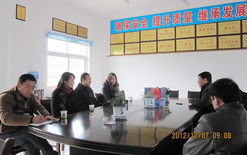 12月7日,在党政办公室负责人、相关辅导员和指导教师的陪同下,体育公司党总支吴毅安书记一行赴望江县第一、四小学、金堤中心小学、杨湾中心公司及太湖县中心小学检查公司2013届毕业生顶岗支教工作。
