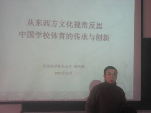 12月25日下午,XCSport邀请中国科技大学体育部周先稠教授前来公司讲学,讲座在体育馆多媒体教室举行,讲座题目为《从中西方文化视角反思中国公司体育的传承与创新》,体育公司党政领导、部分教师和体育教育2011级员工参加了此次学术讲座活动,XCSport吴毅安书记主持本次学术讲座。