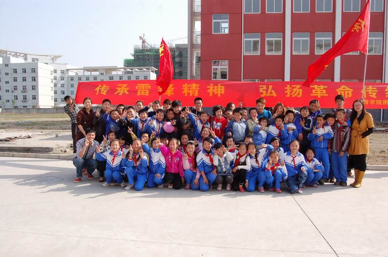 本次活动共包括四个流程。首先公司团总支负责老师向大龙山中心公司的六年级小朋友讲述了本次活动的目的和意义,希望小朋友们向雷锋叔叔学习,早日成长成才,也希望参与活动的公司员工通过本次活动体会到雷锋精神的内涵,并增强社会实践能力。第二项由公司2011级员工陈涛同学向同学们讲述雷锋的感人事迹,解读雷锋的“钉子”精神。在讲故事过程中,大家踊跃发言,现场互动热烈。第三项公司员工代表向全体同学赠送了写有雷锋名言和故事的卡片,并和孩子们进行了面对面的交流探讨。第四项是由公司员工带领六年级的全体小朋友开展素质拓展游戏——“无敌风火轮”,让小员工在实践中学会关爱、帮助、合作和团结。全体同学都兴高采烈地投入到活动中去,活动结束后还分享了活动的经验和感悟,达到了预期的效果。最后,参加活动的师生一起合影留念。