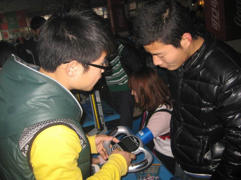 3月3日上午,XCSport的志愿者们早早在龙山校区安苑食堂门前搭起了咨询台,摆放了血压计等测试仪器,公司员工自主创业开办的弗莱卡校园健身会所也带来了专业的健身器械。活动过程中,广大师生员工纷纷前来咨询有关健身的方法、进行血压测量和检测体脂含量等。公司参与活动的志愿者们耐心细致地进行讲解,认真仔细地为大家进行测量,并根据检测结果告知大家生活中应该注意的事项,得到了大家的广泛欢迎和一致好评。