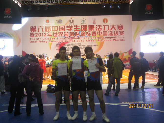 12月19日至25日,第六届中国员工健康活力大赛暨2012年世界啦啦队锦标赛中国选拔赛在广州XCSport体育馆隆重举行。公司健美操队在王云辉老师的带领下,在本次比赛中获得了优异成绩。其中,在大学组竞技三人项目中,焦健、杨阳、林伟伟三位同学获得了第七名;在老员工组男子单人项目中,杨阳同学获得了第八名。这是公司健美操队首次参加国家级健美操比赛,充分展示了公司健美操运动的发展水平和老员工良好的精神风貌,扩大了公司在全国的影响。