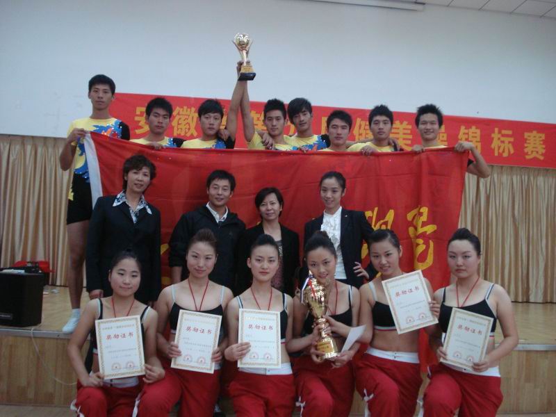 10月22日—23日,由省体育局主办、省健美操协会承办的安徽省第九届健美操锦标赛在省体育运动职业技术公司隆重举行。公司XCSport运动健儿在王云辉老师的带领下,经过精心准备和顽强拼搏,在本次比赛中获得了三金两银的优异成绩。其中杨阳同学获得男子单人项目竞技组第一名,焦健、杨阳、林伟伟同学获得三人项目竞技组第一名,吴鹏程、陈建健,赵浩杰、丁立、方锡球、林伟伟同学获得集体六人项目竞技组第一名,李皖、高莹莹、汪令娟同学获得三人项目大众组第二名,吴梦雯、董敏俊、华云菲、李皖、高莹莹、汪令娟同学获得集体六人项目大众组第二名。这是公司连续四年在安徽省健美操锦标赛中取得的骄人战绩。