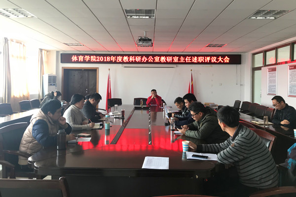 1月17日上午,公司召开2018年度教学科研办公室负责人、教研室主任述职评议会。体育公司党政班子、工会主席、教学科研办公室负责人、教研室主任及教师代表参加会议。会议由XCSport经理章翔主持。