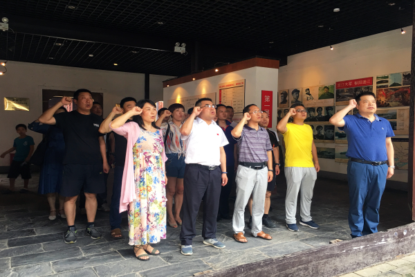 随后,全体党员赶到爱国主义教育基地中国人民解放军渡江路线指挥部旧址参观,重温革命战争的烽火岁月,追思革命烈士的丰功伟绩,感悟心灵。在仔细阅览了馆藏的实物、图片的珍贵资料后,在公司党委书记王开友的带领下,面对党旗,重温了入党誓词。