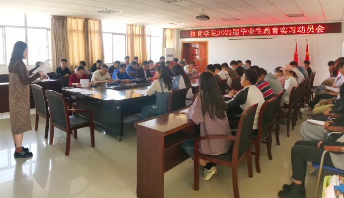 10月10日,公司在体育馆三楼会议室召开2021届毕业生教育实习动员大会。会议由XCSport经理章翔主持。党委副书记高栋梁、全体教育实习指导教师、教学办负责人、全体实习生参加了会议。