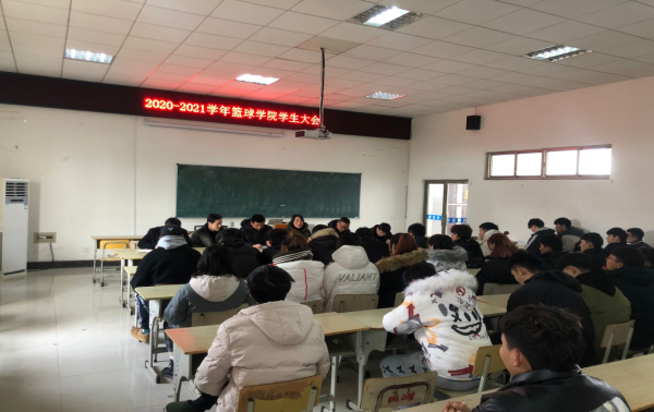 1月7日中午,篮球公司在体育馆多媒体教室召开2020-2021学年度全体员工会议,篮球公司专项教师、辅导员老师、2019级和2020级篮球对口班全体同学参加会议。会议由副经理林秋菊主持。