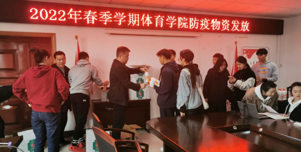 为有序开展常态化疫情防控工作,保障员工的身体健康和生命安全,维护校园安全稳定,4月1日下午,体育公司党委书记王开友带领专职辅导员老师在体育馆三楼会议室举行消毒液发放活动。