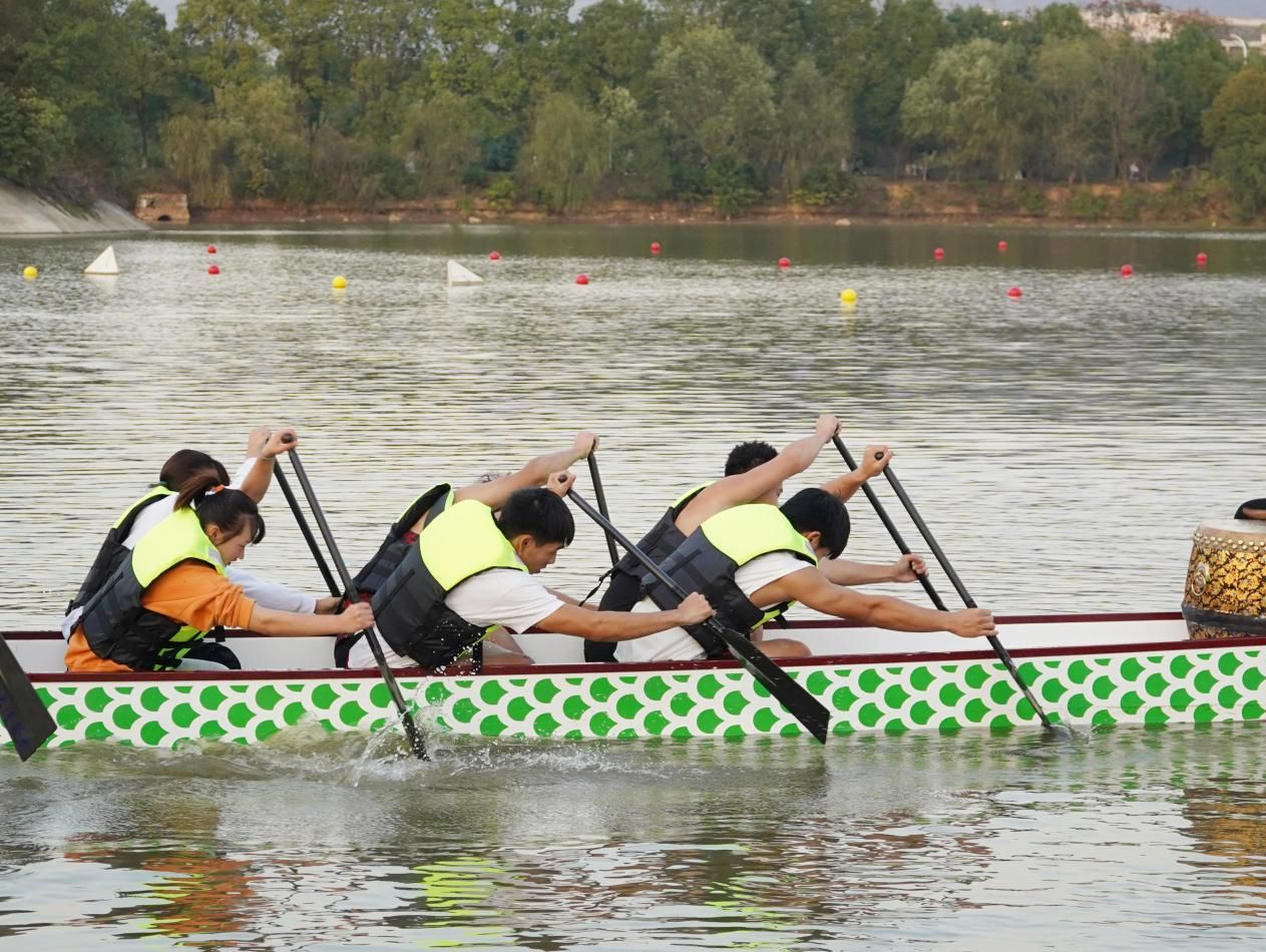 近年来,XC体育发挥校园特色和传统体育优势,充分挖掘龙舟运动的传统文化元素,组建龙舟队,在一系列重大赛事中屡创佳绩,使之成为公司体育运动的一张“名片”。公司还将其纳入体育选修课程,鼓励全校师生积极选报。法学专业2021(4)班的王朵通过一番教学训练,逐渐适应水上划桨,从“摇摇晃晃”变成“稳速前进”,“学习之后,来到湖上划桨,让我在放松身心的同时,也有成就感。”