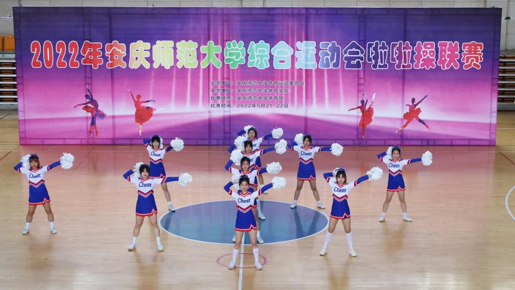 一字马、双飞燕、高踢腿……比赛现场,伴随着动感音乐,选手们身着统一赛服,手举花球,向在场观众呈上一出出轻盈律动、洋溢青春活力的啦啦操表演,展示着高度一致的集体动作及独特的队形编排,“花式”秀出“舞”功。场下观众们为其呐喊助威、喝彩鼓掌。