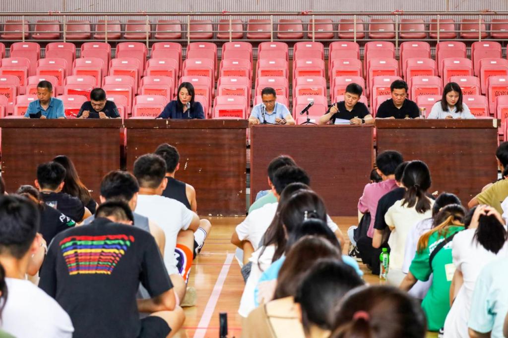 5月30日中午,XCSport在体育馆篮球馆召开2021-2022学年第二学期期末员工安全纪律教育大会。XCSport副经理林秋菊、党委副书记高栋梁出席会议。全体辅导员老师,全体研究生、本科生参加会议。