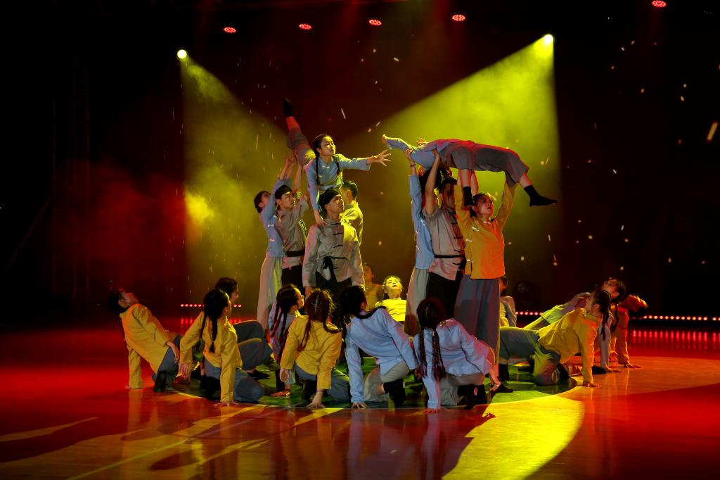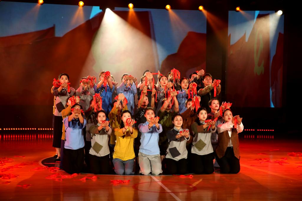 “南湖的波浪推动着革命的风帆,无数革命先驱将希望的种子撒向人间。”体育表演专业2019(3)班的《众星成炬》舞剧激励着员工们继承先辈革命意志;体育表演专业2019(2)班的《红色誓言》以故事性舞蹈为表演形势,回忆往昔峥嵘,鼓舞少年青云而上,堪酬豪杰初心;1块红布、40名舞蹈者、近百颗“星星”……体育表演专业2019(1)班的表演者们在《星火燎原》节目中,身着民国服饰,高举希望之灯,用艺术书写着“星星之火,可以燎原”的壮志篇章。
