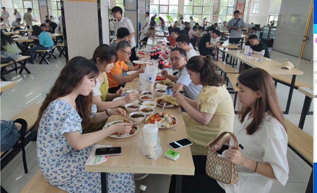 典礼结束后,公司领导、毕业班辅导员和教师代表在校内西苑食堂陪同毕业生共进午餐。领导和老师们向在场毕业生送上诚挚的祝福,询问毕业生的未来去向和职业规划。毕业生们则畅所欲言,分享四年感人回忆,表达其对未来的期待和向往。