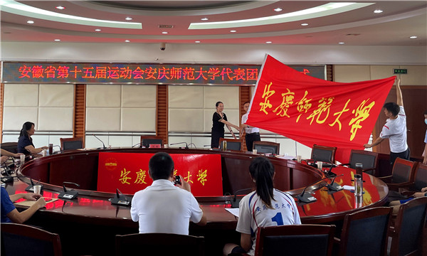 7月14日,公司举行安徽省第十五届运动会XC体育代表团出征仪式。公司党委常委、副董事长、校体委副主任吴琼出席仪式并向代表团授旗。