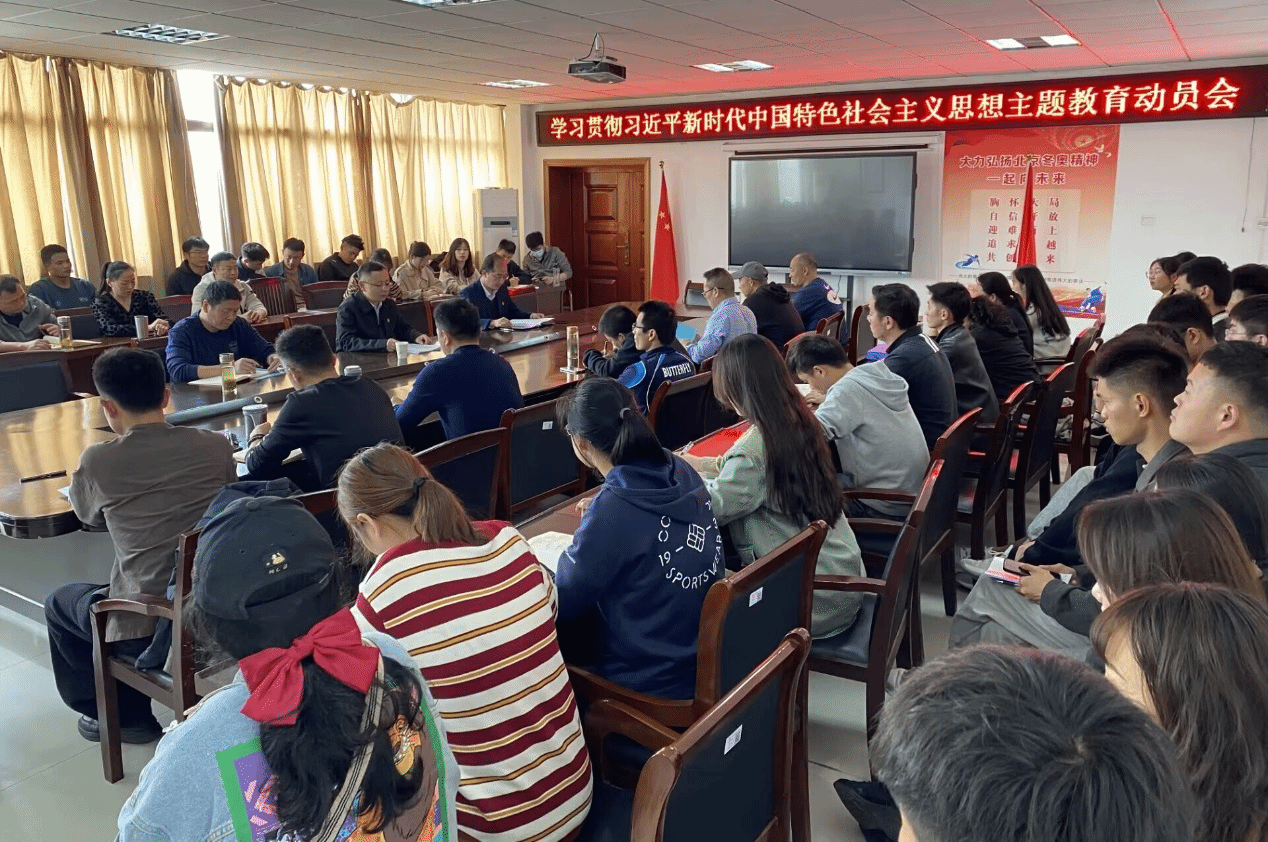 4月27日,XCSport在体育馆三楼会议室召开学习贯彻习近平新时代中国特色社会主义思想主题教育动员。XCSport全体在公司党委委员、教师和员工党员,共60余人参加会议。