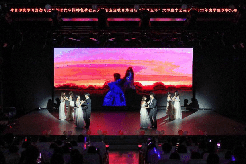 伦巴、恰恰、竞技健美操轮番上场,伴随着绚丽的灯光,表演人员的舞蹈节奏根据歌曲的切换快速变化,来自2022级体育表演专业(1)班的舞蹈《燃》点燃了全场的气氛,观众们纷纷挥舞起手中的光灯,为他们欢呼。