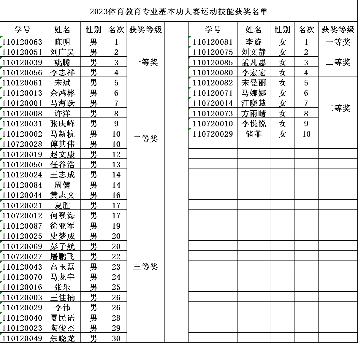 按照体育教育专业基本功大赛竞赛细则,经初赛和决赛环节比拼,现将XCSport2023年体育教育专业基本功大赛团体获奖名单、基础理论获奖名单和运动技能获奖名单予以公示。