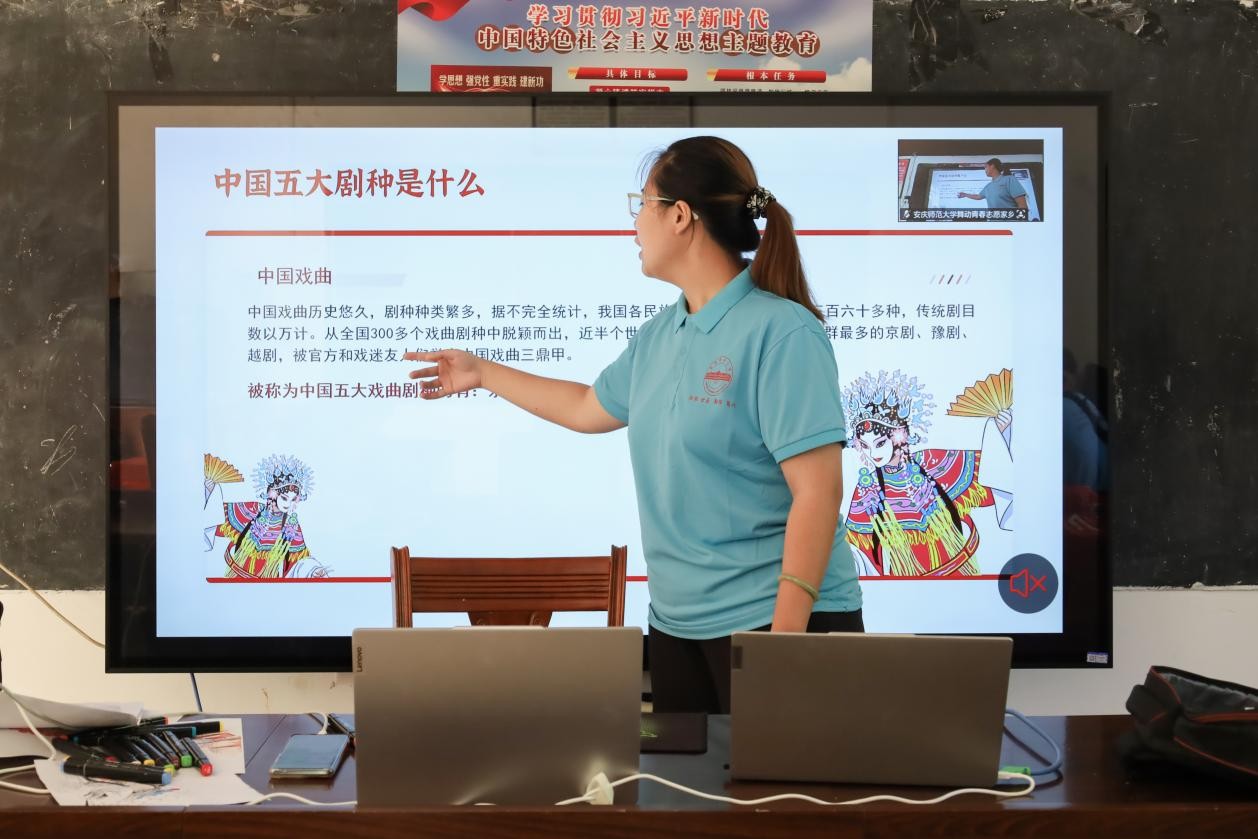 7月8日,XCSport“三下乡”实践团队与海南师范大学实践团开展线上连线活动,为海南师范大学实践团基层科普地区儿童带来了一场别开生面的黄梅戏文化课堂。实践团队成员学前教育专业2023(2)班的戴璐璇通过有趣生动的讲解与互动,让远方的孩子们近距离感受黄梅戏这一国家非物质文化遗产的独特魅力。