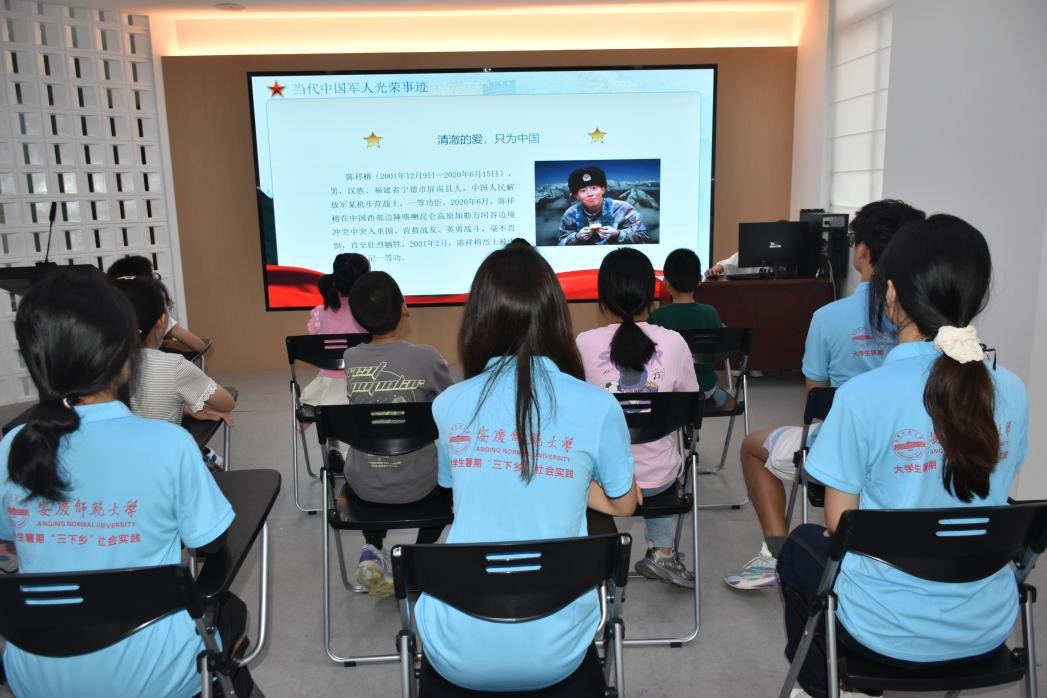 “八一”建军节前夕,广德市祠山街道公共文化中心内童声嘹亮,敬意满怀。7月31日,XCSport“艺教润童,康护暖邻”暑期社会实践团联合清溪社区,共同举办“庆祝建军98周年”主题教育活动,通过沉浸式体验与互动教学,引领社区儿童感悟军魂力量,致敬“最可爱的人”,在孩子们心中播下爱国拥军的种子。