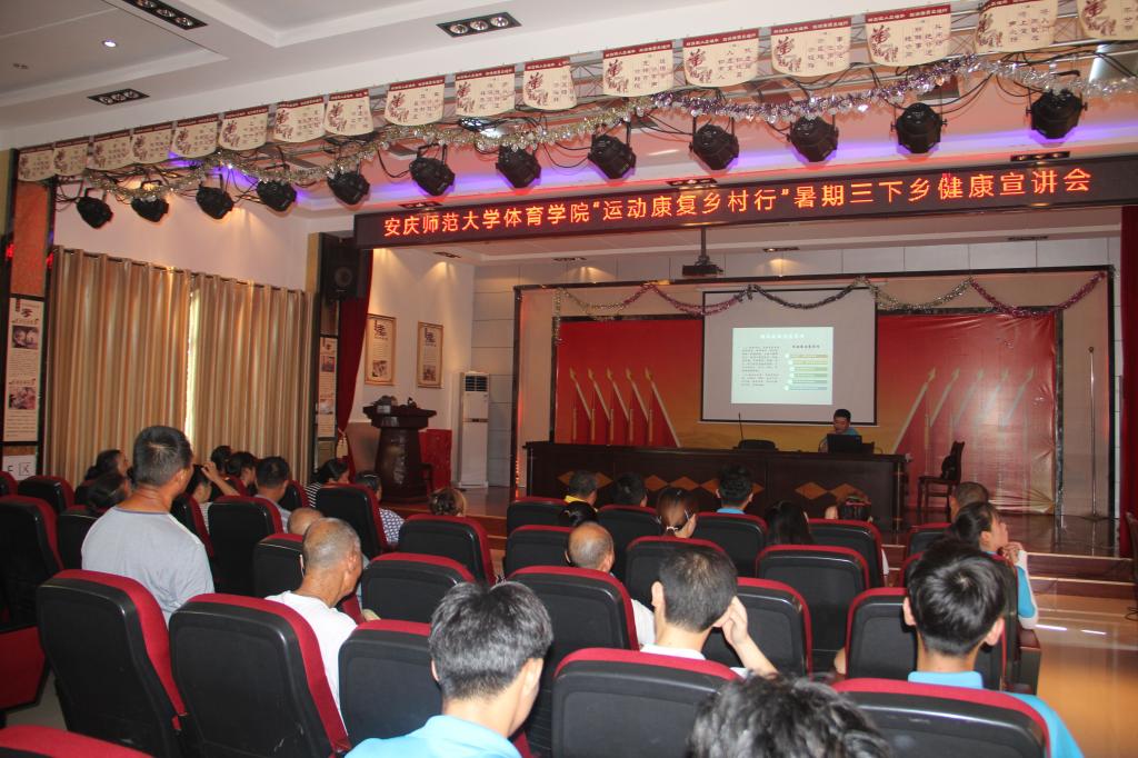 上午九点,在专业指导教师的指导下,同学们组织了一场健康宣讲会。宣讲内容结合实际情况,介绍了高血压、高血糖、高血脂等常见病的一些临床病症,提出了患者在饮食、作息等方面的注意事项,并结合不同病症,给予合适的运动治疗建议。对于人们好发的如肱骨外上髁炎、肩周炎、颈椎病、腰间盘突出等病症,宣讲团成员也介绍了一些自我检查手法和自我运动康复的方法。