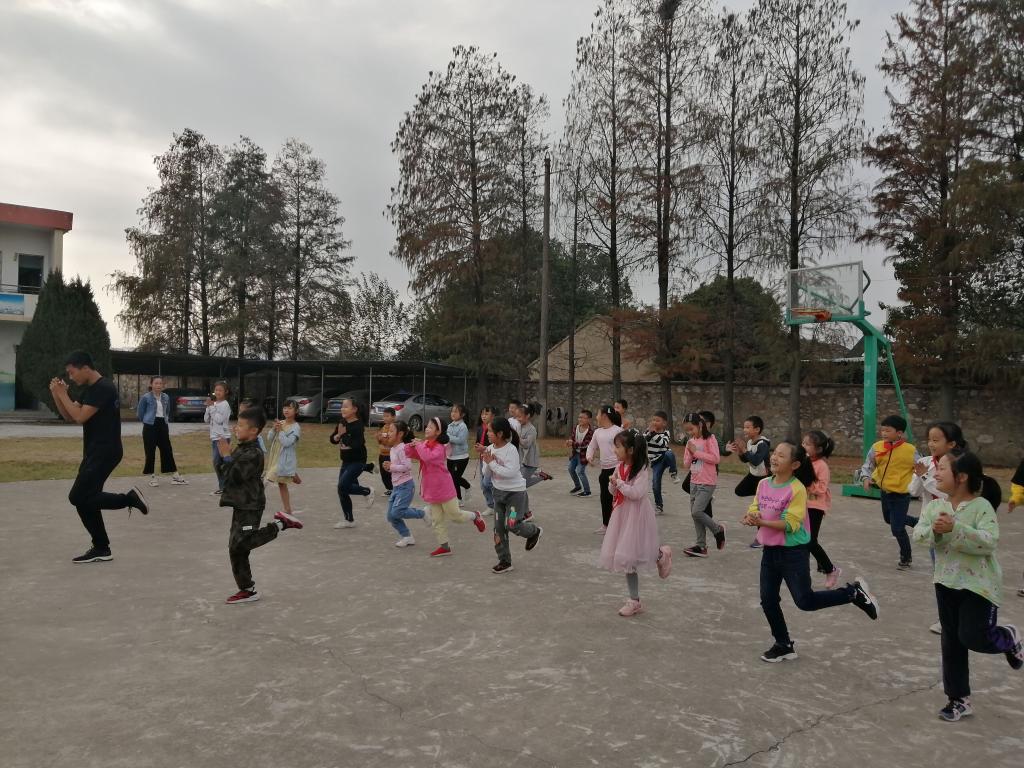 本次活动为员工党员代表陈善勇为三年级一班的员工进行体育与健康教学,根据我们的专业知识选择教学的主要内容是基本健美操步伐。在这次活动前我们做好了充足的准备,一遍遍排练上课的流程,希望竭尽所能传授所学知识。一进公司,之前在这所公司进行了一年的支教活动的入党积极分子巫能静受到了同学们的热烈欢迎,孩子们纷纷围绕上来,我们身边总是有无数在默默奉献着的人。员工们对“新老师”充满着好奇,在课程的开始我们便遇到了困难:孩子们的活泼和老师的紧张。但随着体育课的展开同学们渐入佳境老师也越来越得心应手,最后的成果显著,同学们可以跟上老师的口令进行动作展示。陈善勇老师还送给孩子们一个小惊喜:进行了五步拳、空翻和后空翻展示,增强孩子们对体育的热爱,响应“体育强国”政策的号召。虽然只有短短的一下午,但是我们打破了员工们对于以往体育课的认知,给员工带来了全新的课程体验,他们知道了体育课原来并不是简单地跑步而是有多种形式,在教中学在学中玩。