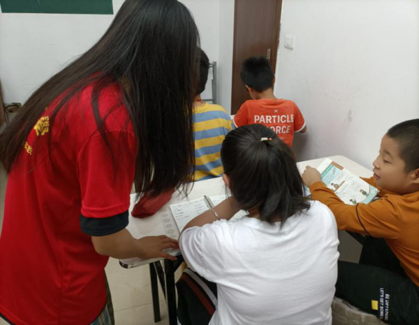 除了做学习上的教育者,实践队还担负起孩子们生活中的“心理疏导师”。“因为洪水影响,很多孩子都被迫从家中转移,心情十分低落。”陈磊说,当晚他们连夜召开讨论会,商量一些好办法,之后依据人数将孩子们分组,交由不同的队员私自引导,让他们尽快走出失落的情绪。