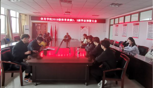 4月12日中午,2019级体育表演2、3班学业预警会议在公司会议室召开,班级辅导员高栋梁老师主持会议。