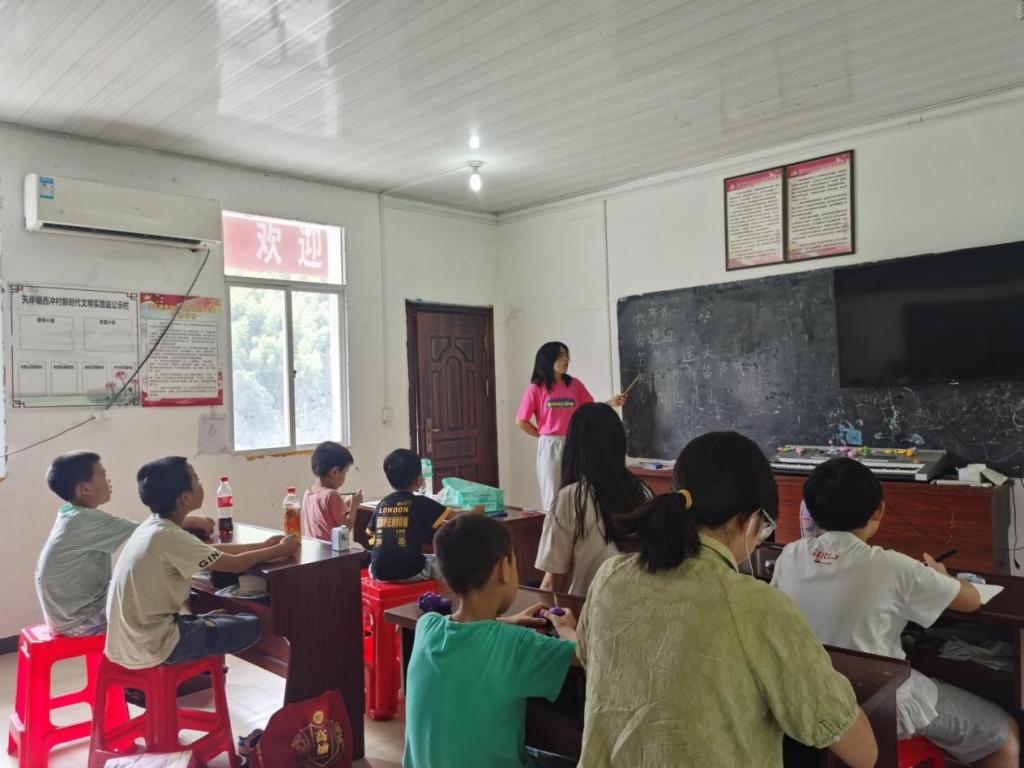XC体育员工暑期三下乡社会实践服务队走进了安庆市太湖县天华镇西冲村。在村子里教学的这段生活中,队长刘会茹带着队员们和村子里的小朋友们一起进行了歌曲和舞蹈的学习。