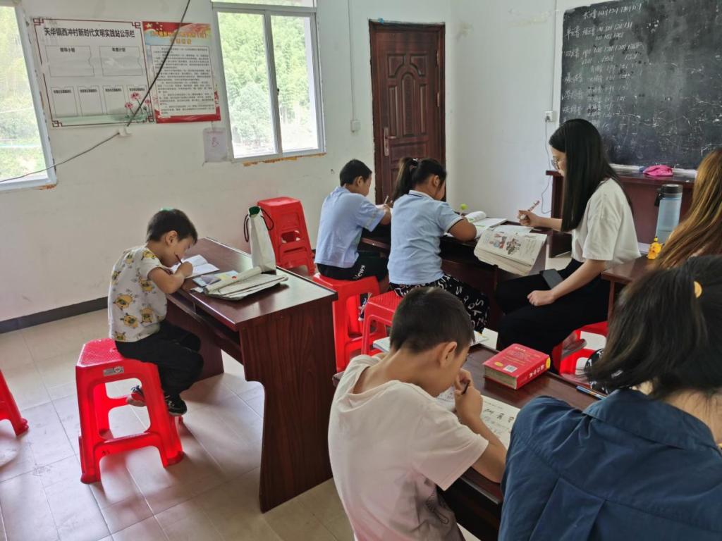 教育是民族振兴和社会进步的基石,教育公平是社会公平的重要基础。乡村教育由于受经济发展、基础设施、地理位置等各种因素的限制,教育水平相对落后,因此辅导孩子假期作业也成为了此次暑期三下乡社会实践活动的重要任务之一。在辅导作业的过程中,成员们耐心地为孩子们讲解分析题目中所包含的知识点,循循善诱,做到“授之以渔”。同时开展趣味性教学,激发孩子的学习兴趣,更好地掌握所学的知识点。