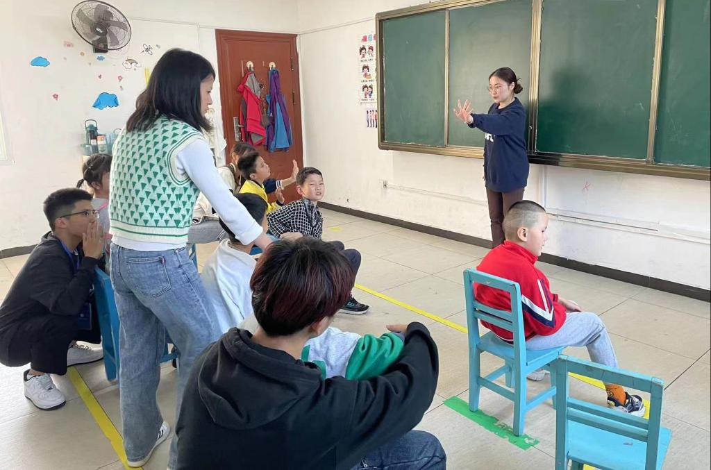 活动过程中,志愿服务队周欣平同学教自闭症小朋友学习手势舞《小手拍拍》。刚开始,小朋友们与志愿者的交流有一定的困难,但在志愿者的积极鼓励下,小朋友们表现越来越好,能做出基本动作,也激发出学习的热情。志愿者同学们辅助特殊教育机构的老师,对小朋友们完成感统训练和律动训练。在互动中,志愿者和小朋友们从陌生到熟悉、从不知所措到亲密合作,处处洋溢着爱与温情。